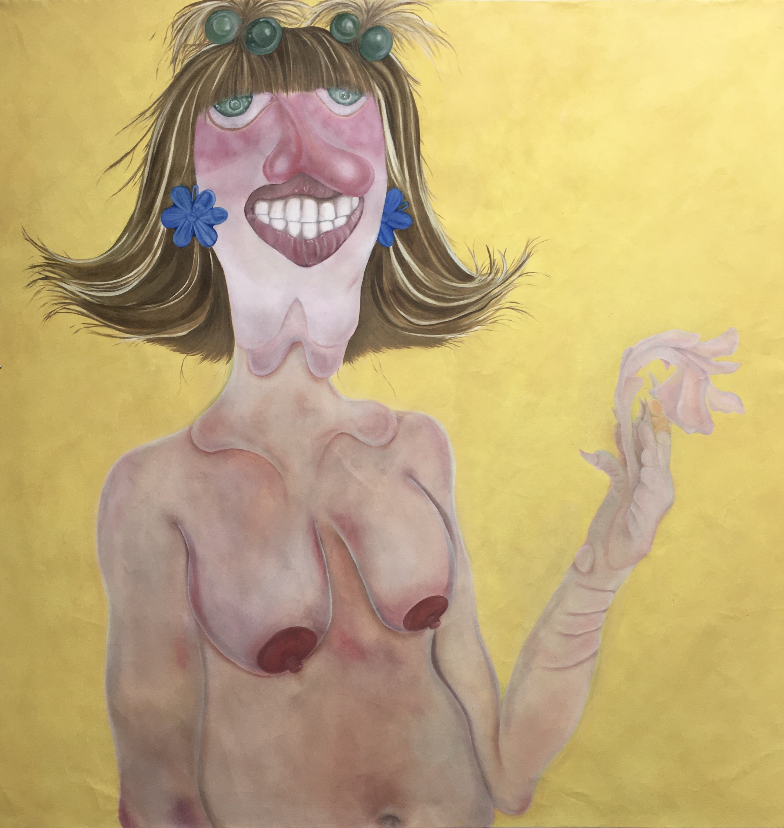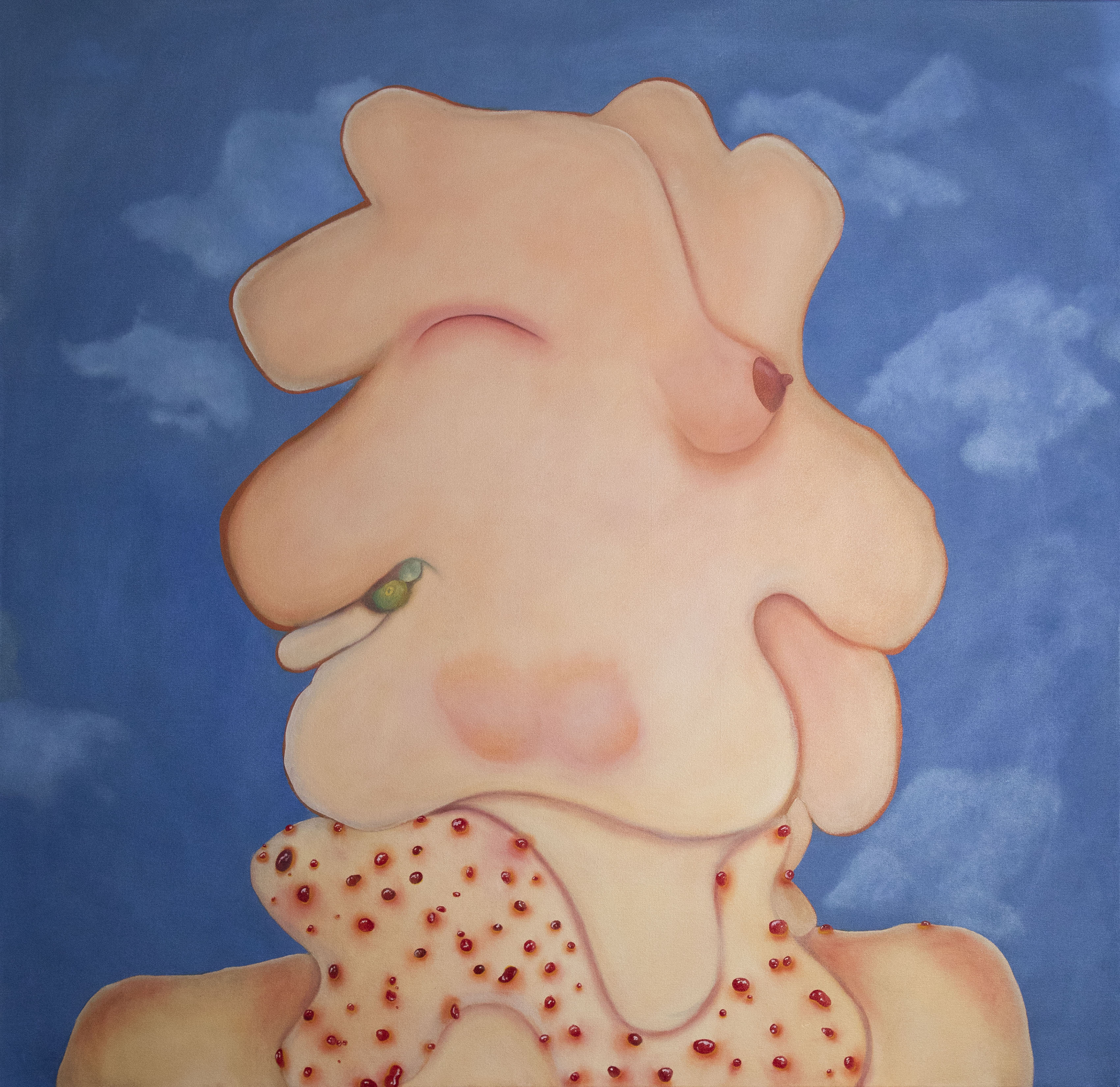 Danielle Blanding was born in Stockbridge, Georgia in 1997. Blanding graduated from Savannah College of Art and Design, with a Bachelor’s in Fine Art in March 2020. Blanding’s artistic practice is evolving through an exploration focused on the fear of cause and effect. Blanding does not shy away from topics such as human disgust in her works, even touching upon deformity, through organic forms that spill and morph on painted canvas. The figures in her work are a beguiling combination of such natural beauty and deformity, that create ambiguous portraits that might be of one’s internal self image, than one’s mirror image. Blanding has created a world of characters that embrace their own faults, the uglier side of human nature, and they naturally embrace the unknown. In Blanding’s unusual canvases, not for the faint of heart, we come to see ‘deformity’ in the sense of ‘de-’ and ‘form’ in a new light.