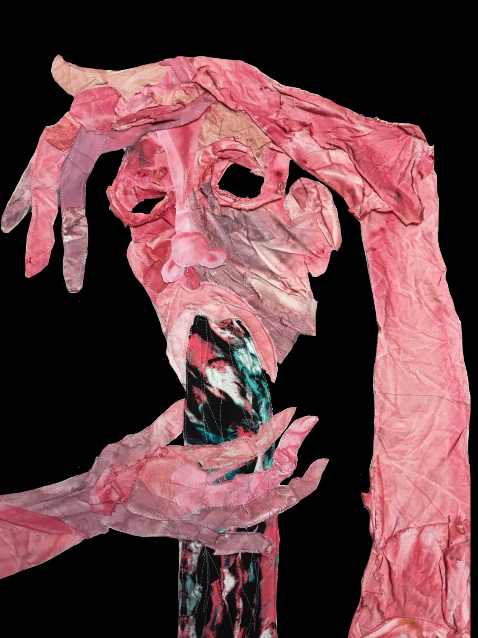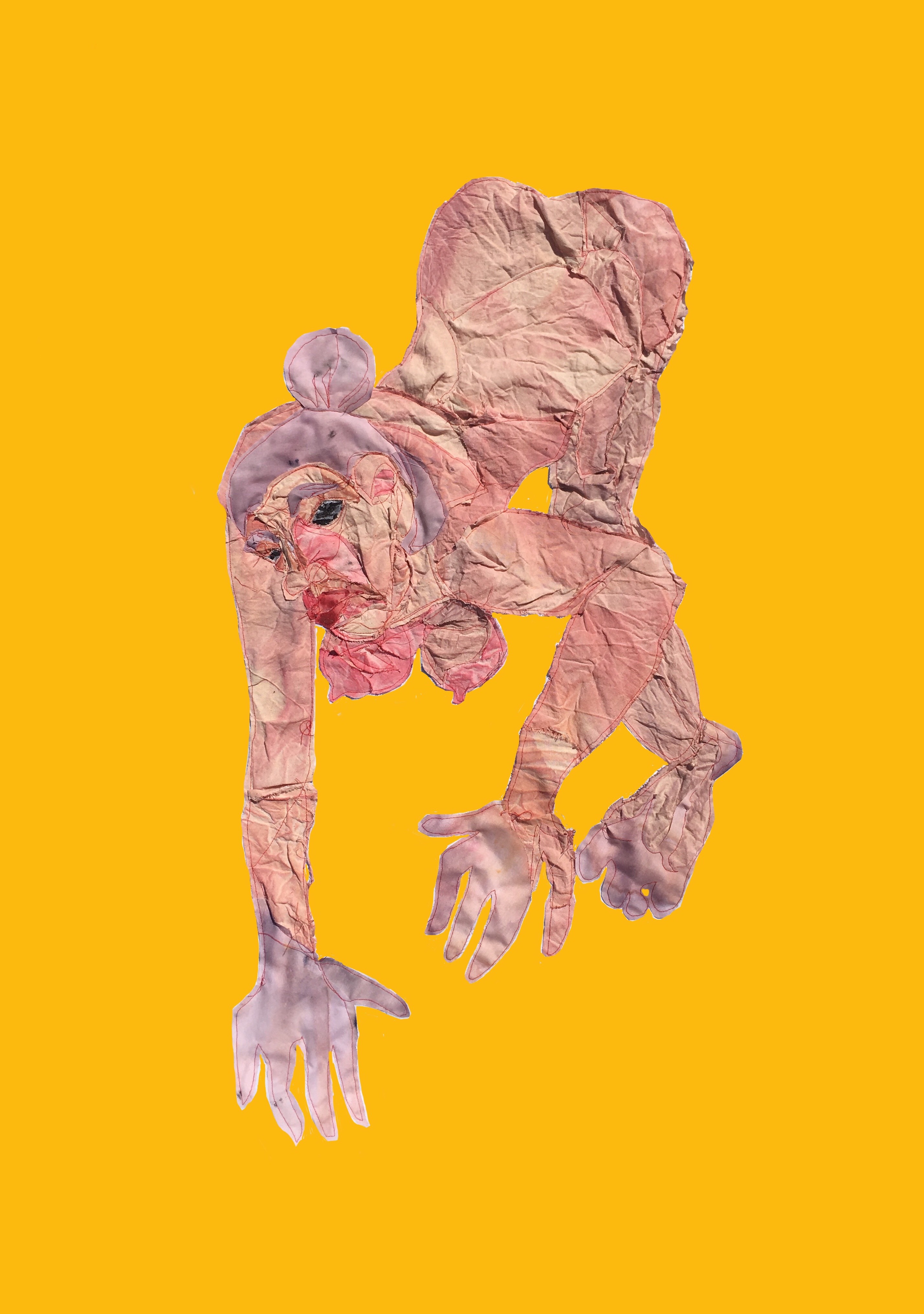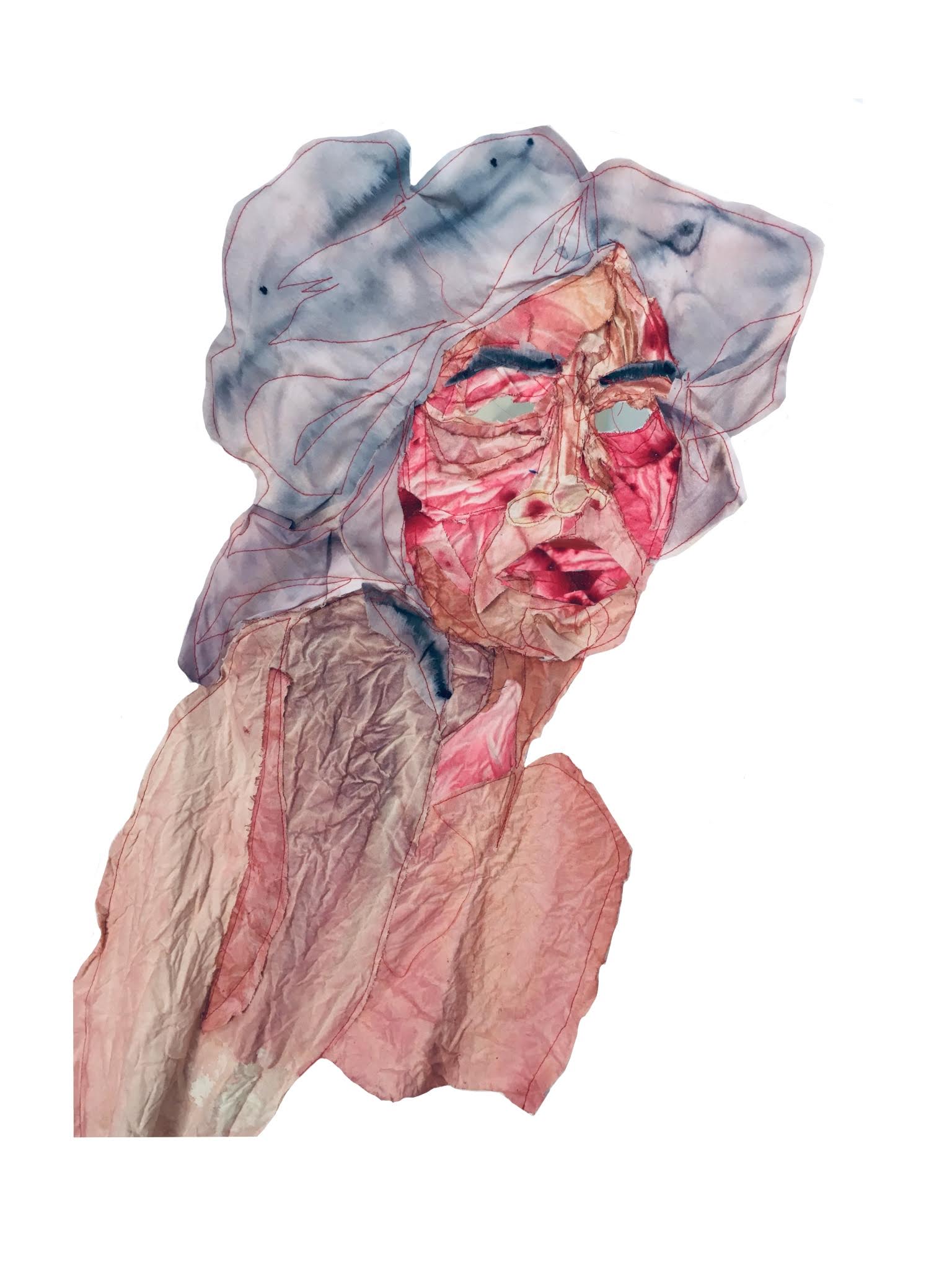My current body of work is concerned with the iconography of the female body seen through the lens of socially constructed relationships and fantasies. In history, religion, pop culture and the current social climate, the icon of the woman is devoured, fragmented and pieced together by the voyeur. Using embroidery and fabric to stitch together my conceived perception, these pieces revel in the way in which women project themselves to others and themselves.