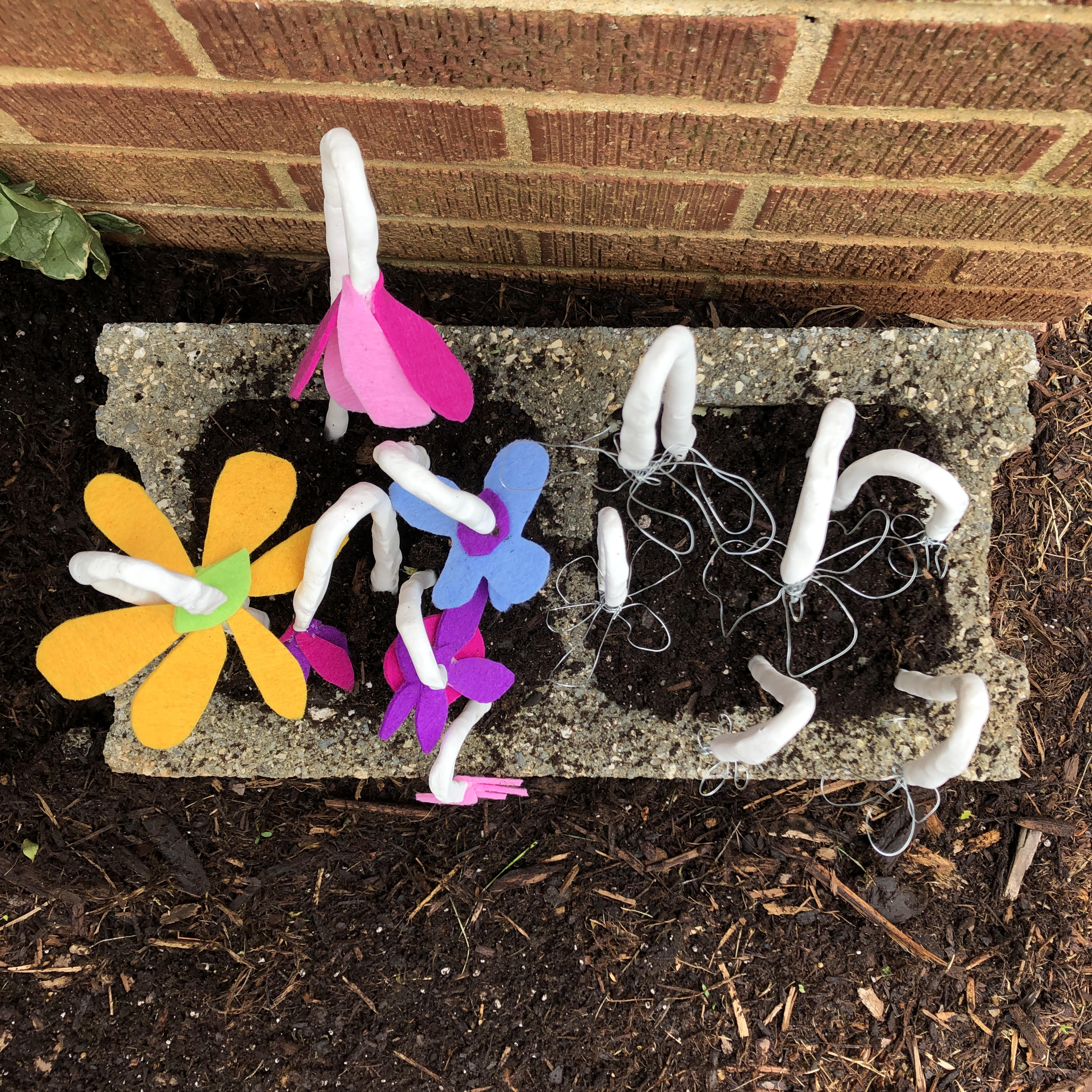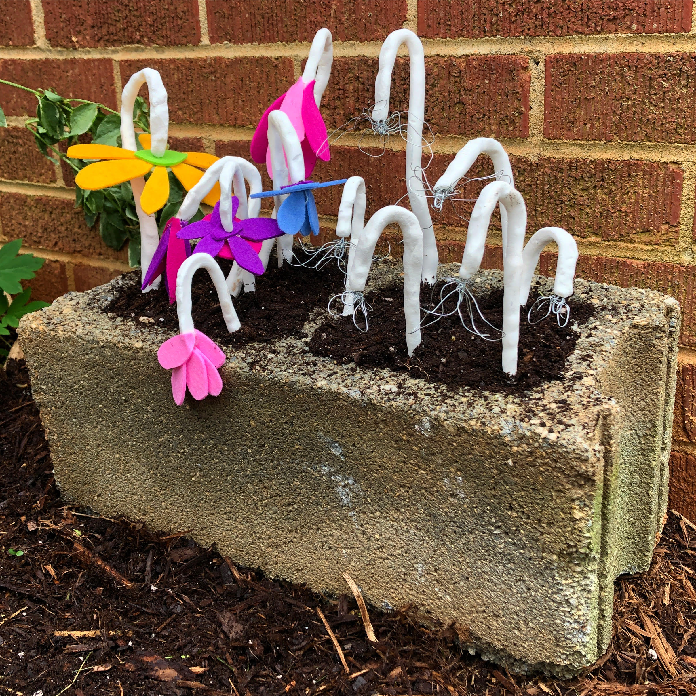 just be a sad flower, 2020 // cinderblock, felt, wire, clay, dirt